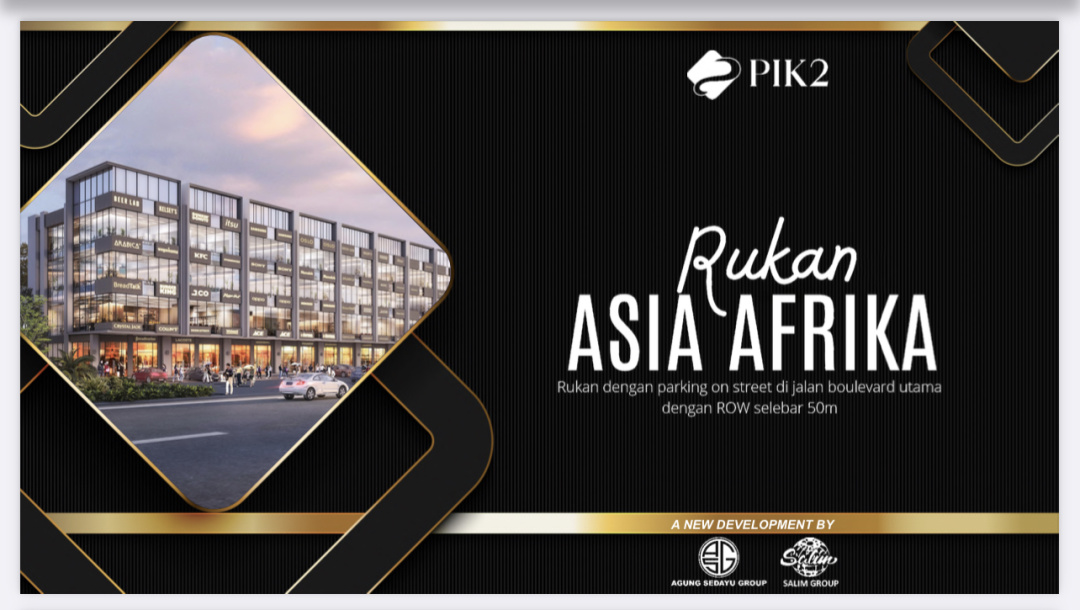 Jual Hanya 45 Juta atau 6,3m Rukan Asia Afrika 4 Lantai Jalan Boulevard Row 50 Meter Pik2 - Sell Shop House Soho Jl Asia Afrika Boulevard Row 50m Pik2