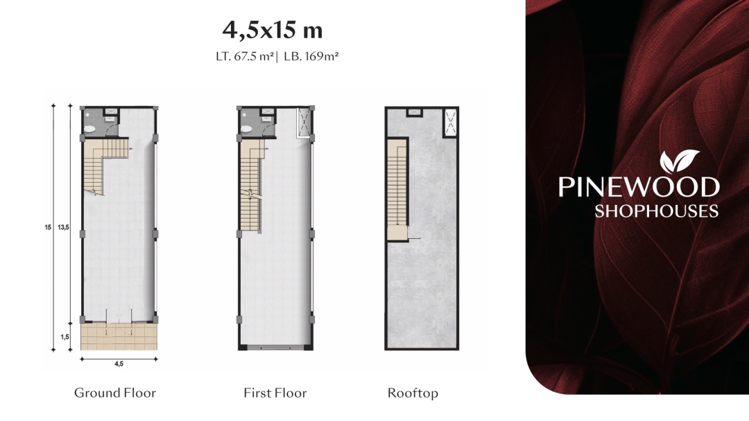Building / Luas Bangunan: 169 m2 ( 4,5x15 2,5 Lantai )