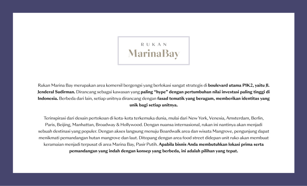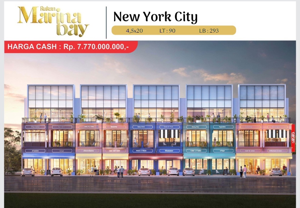 Jual Cicil 48 Juta atau 6,7m Rukan Marina Bay New York Samping CBD Pasir Putih Pik2 - Sell Shop House Marina New York Side CBD Pasir Putih Pik2