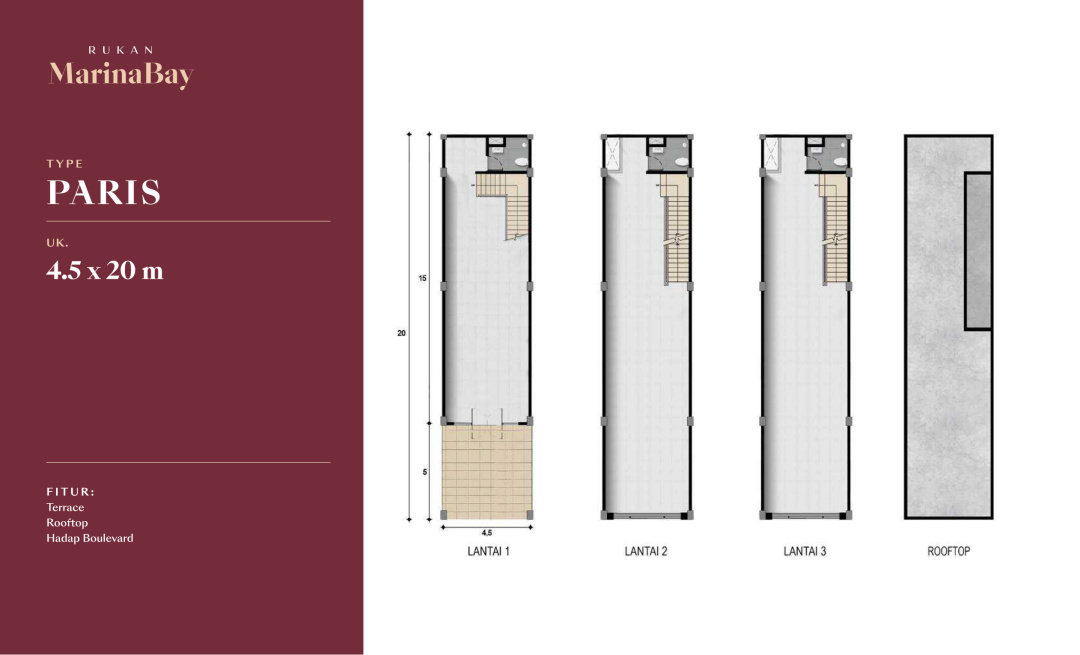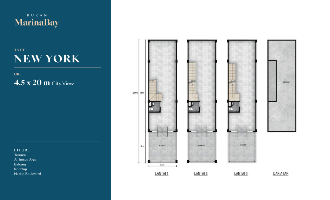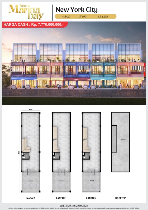 Land / Luas Tanah: 90 m2 ( 4,5x20 New York City )
