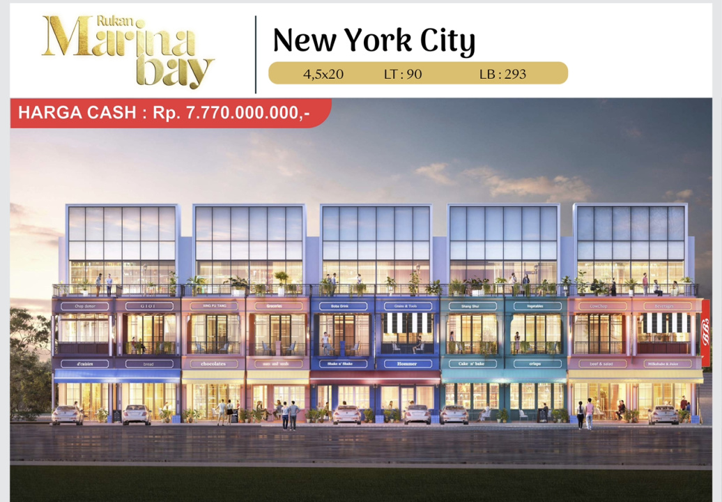 Jual Cicil 53 Juta atau 7,6m Rukan Marina Bay New York Hoek Samping CBD Pasir Putih Pik2 - Sell Shop House Marina New York Corner Side CBD Pasir Putih Pik2