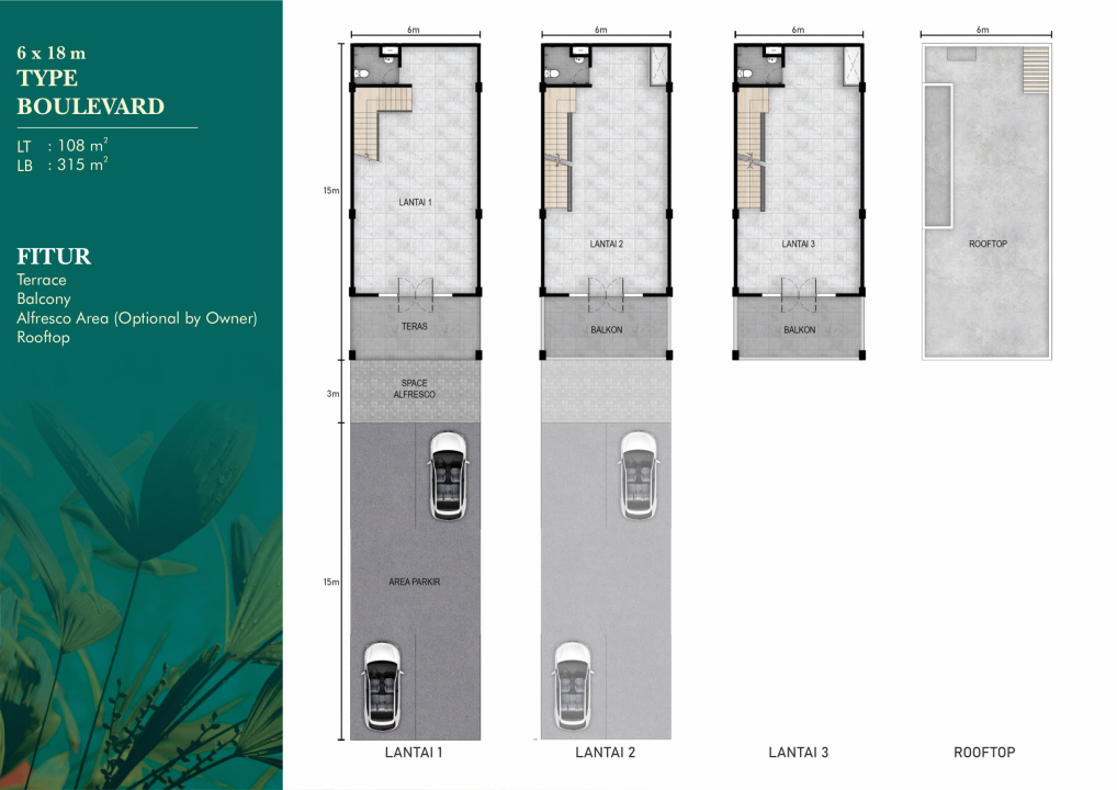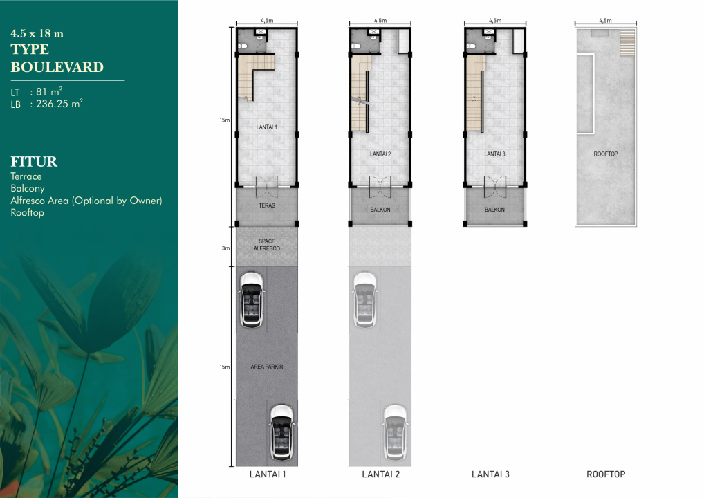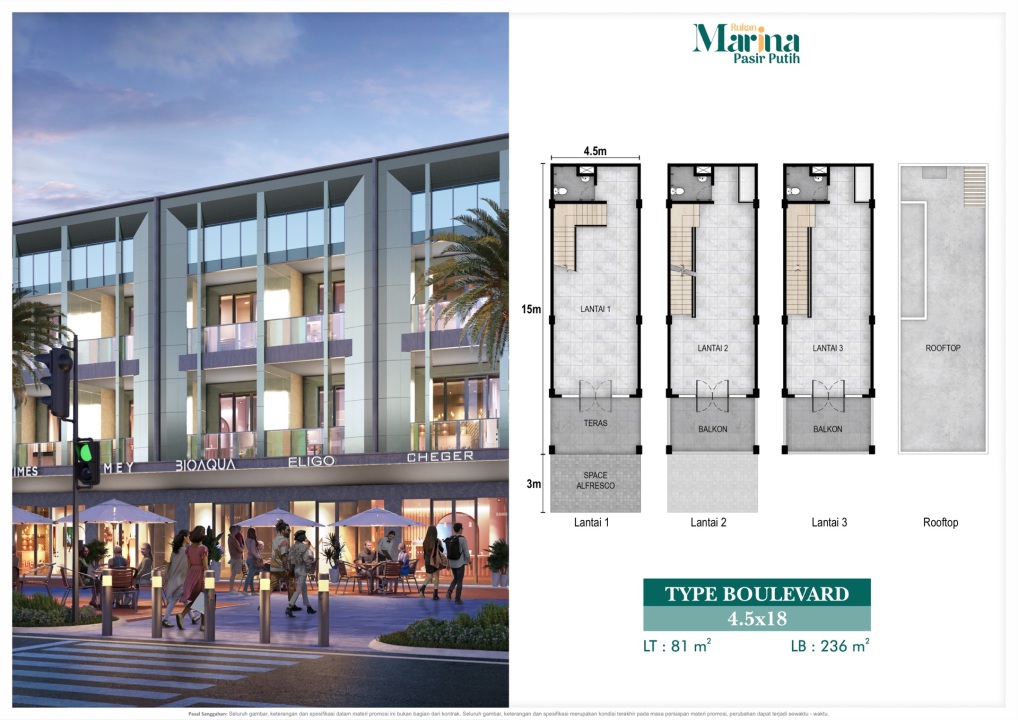 Land / Luas Tanah: 81 m2 (4,5x18 Jalan Boulevard Corner)