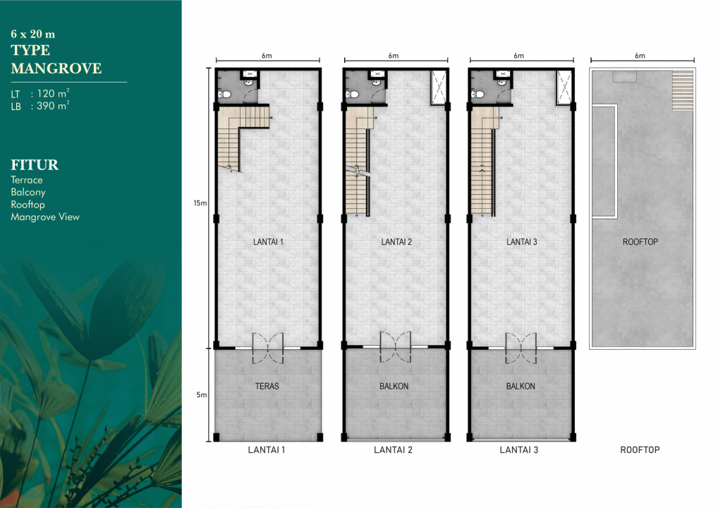 Building / Luas Bangunan: 236 m2 ( 3 Lantai + Rooftop )