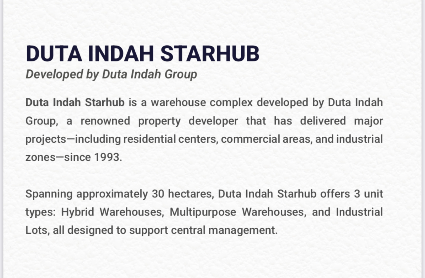 Jual Hanya 56 Juta atau 5,6m Gudang Duta Indah Starhub Samping Tol Bandara Standard Selatan - Sell Warehouse Duta Indah Starhub Near Toll Gate Bandara Airport