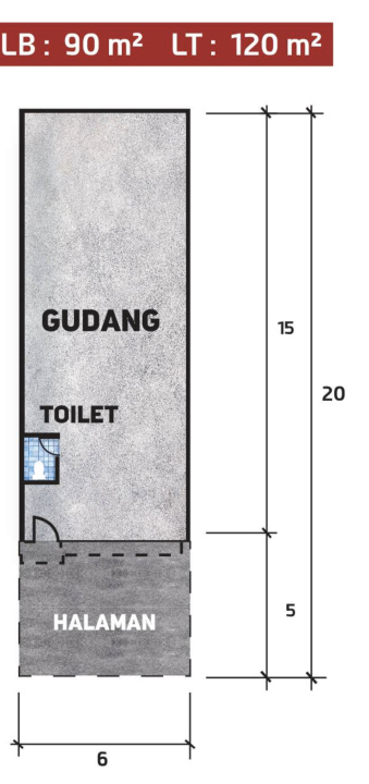 Land / Luas Tanah : 120 m2 ( 6x20 )