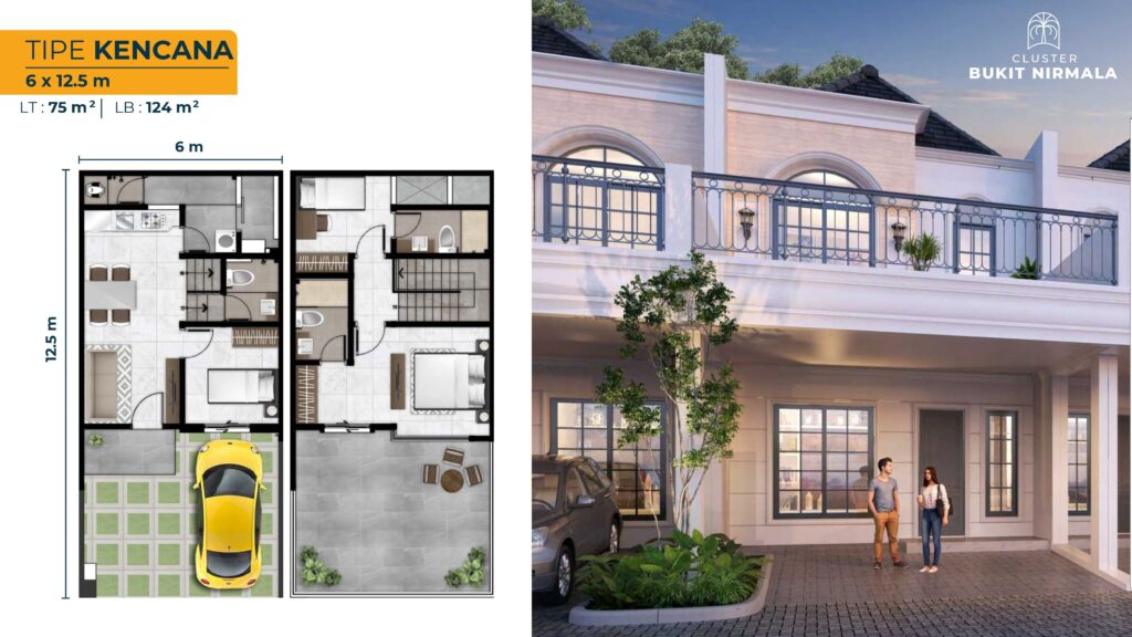 - Kencana (6x12.5 m | LT 75 m² | LB 124 m²)