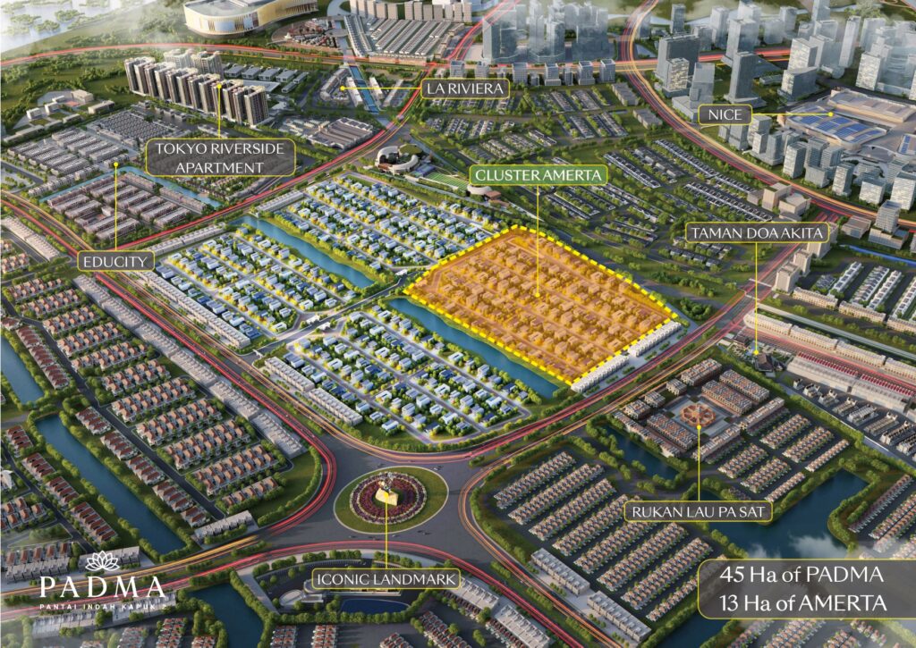 PADMA Cluster Amerta adalah kawasan hunian eksklusif terbaru di Pantai Indah Kapuk 2 (PIK2), yang menghadirkan perpaduan sempurna antara kemewahan dan ketenangan alam. Terletak strategis di pusat CBD PIK2, PADMA dikelilingi fasilitas unggulan seperti sekolah internasional, pusat kesehatan, taman hijau seluas 60 Ha, dan akses langsung ke tol utama.
