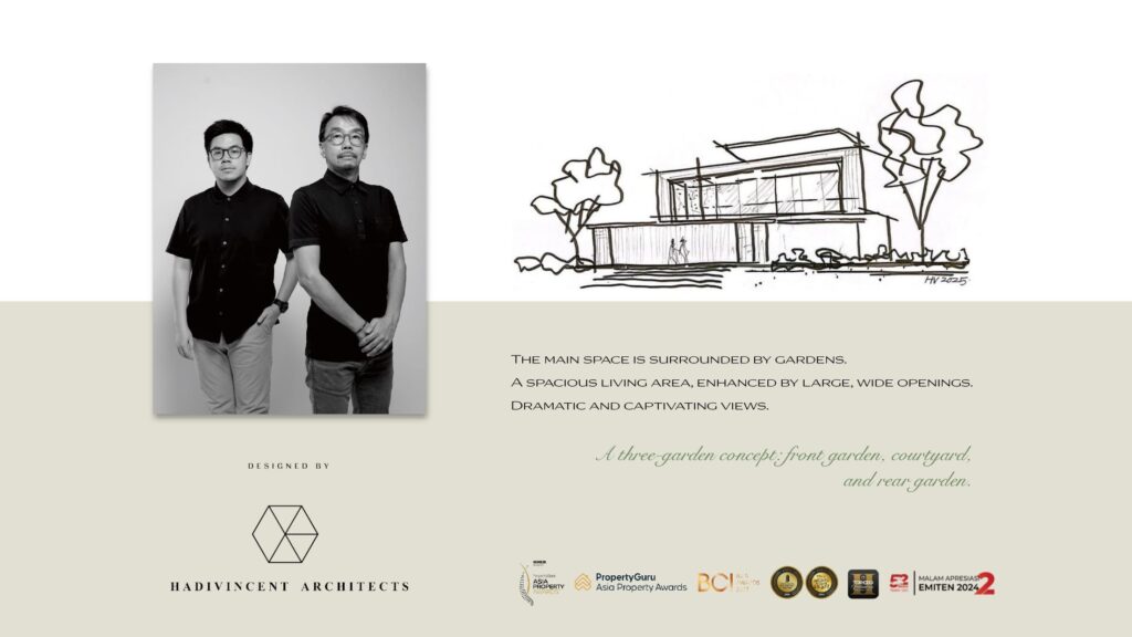 Tiga taman pribadi: taman depan, taman tengah (courtyard), dan taman belakang