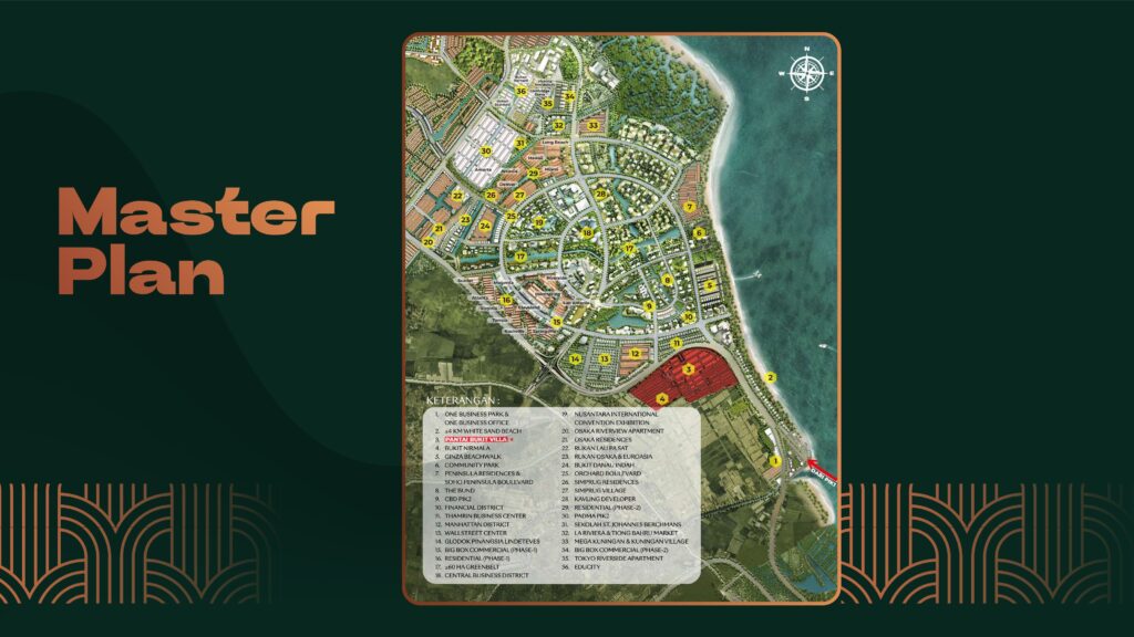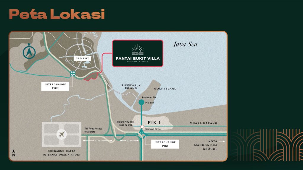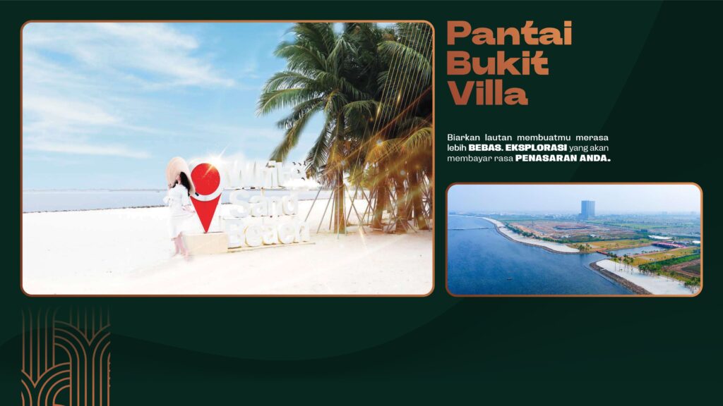 Terletak hanya 300 meter dari Pantai Pasir Putih PIK 2, Pantai Bukit Villa dikelilingi oleh berbagai fasilitas kelas dunia dan area pengembangan paling cepat di utara Jakarta.