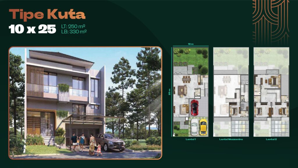Semua tipe dilengkapi mezzanine, taman pribadi, dan area carport.