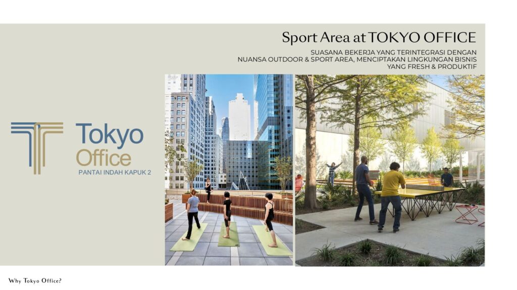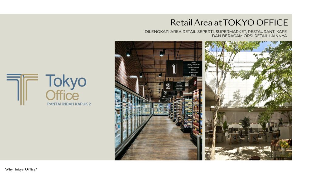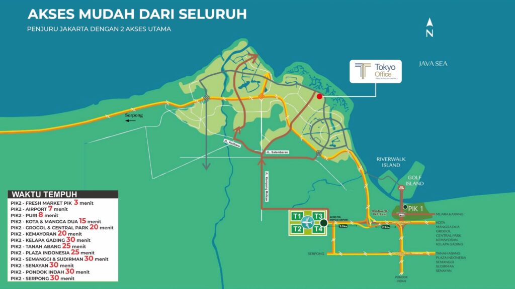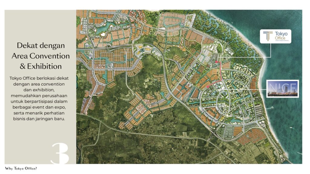Berlokasi strategis di pusat kawasan PIK2, Tokyo Office menawarkan konektivitas unggul ke Tokyo Riverside Apartment, Educity, pusat keuangan, area komersial, convention & exhibition center, hingga pantai pasir putih sepanjang ±4 km. Konsep mixed-use development ini memadukan ruang kerja modern, retail area, communal space, dan fasilitas olahraga untuk menciptakan lingkungan bisnis yang dinamis, nyaman, dan produktif.